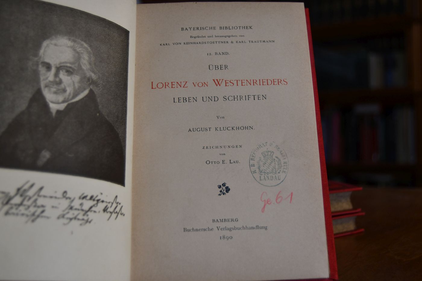 3 Sammelbände Bayerische Bibliothek. Begründet und herausgegeben von Karl von Reinhardstoettner & Karl Trautmann.Bde. 7, 10, 12, 13,15, 24 Enthält August Kluckhorn Über Lorenz Westenrieders Leben und Schriften; Wilhelm Vogt Elias Holl. Der Reichsstadt Augsburg bestellter Baumeister; Franz X. Wegele Aventin; Siegmund Günther Martin Behaim; Anton von Braunmühl Christoph Schreiner als Mathematiker, Physiker und Astronom; Karl Trautmann Oberammergau und sein Passionsspiel; Ernst Mummenhoff Altnürnberg, Schilderungen aus der älteren reichsstädtischen Zeit bis zum Jahre 1350.