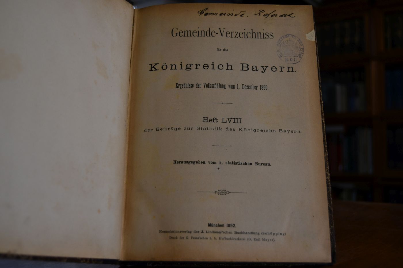 Gemeinde-Verzeichniss für das Königreich Bayern. Ergebnisse der Volkszählung vom 1. Dezember 1890. Heft LVIII der Beiträge zur Statistik des Königreichs Bayern.