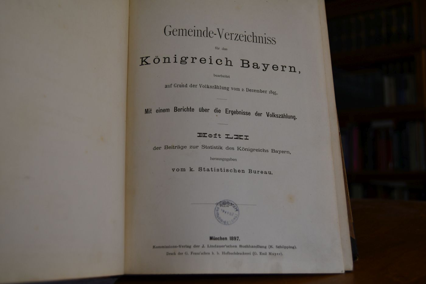 Gemeinde-Verzeichniss für das Königreich Bayern. Ergebnisse der Volkszählung vom 1. Dezember 1895. Heft LXI der Beiträge zur Statistik des Königreichs Bayern.