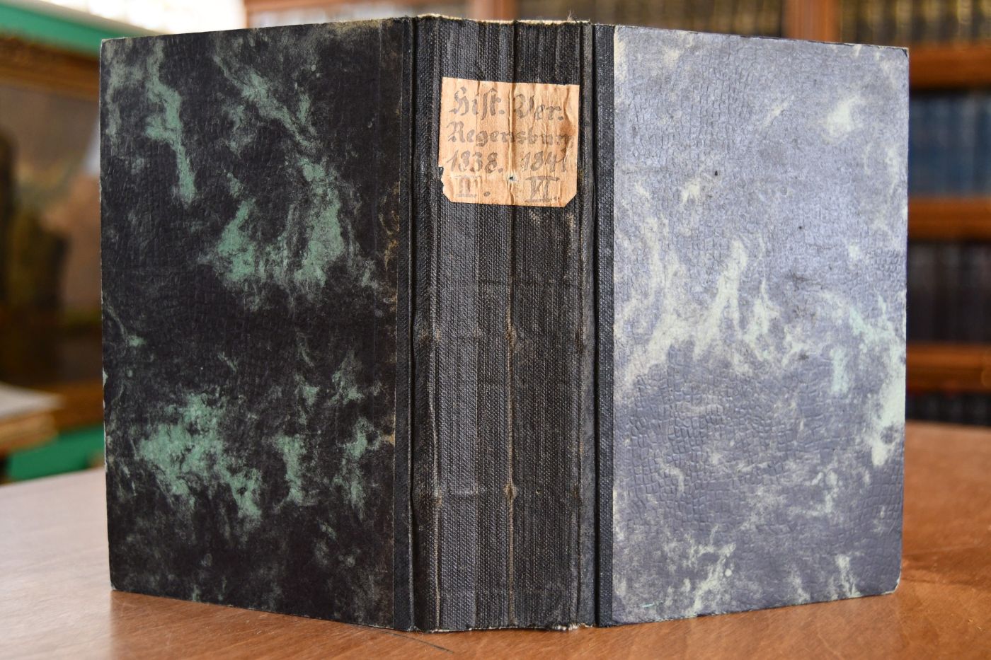 Beschreibung Einband berieben und bestoßen. Durchgehend fleckig und feuchtigkeitsrandig. Einige Seiten stärker angeschmutzt. Beinhaltet: Fr. Xav. Mayer, Monographien, oder topographische Ortsbeschreibungen des Landgerichts-Bezirks Riedenburg (Ritenburg) in dem Kreise Oberpfalz und Regensburg.S, 181-392; v. Voith, Der Hammer zu Aicholting, S. 1-67, Gandershofer, Ueber die vielerlei Benennungen Regensburgs, S. 71-72, Schuegraf, Hailsberg und die Truchsessen von Hailsberg und Eckmühl; S. 73-135, Julie v. Zerzog, Das alte Schloß zu Laaber, S. 135-140, Pangkofer, Der Judenstein am Salzstadel zu Regensburg, S. 140-142, Schuegraf, Ueber einige Denksteine an den Stadtmauern zu Regensburg, S. 142-147, Oesterreicher, Urkundliche Nachrichten von einigen Wüstungen in der Oberpfalz, S. 148-155, Pangkofer, Keppler`s Bildniß und dessen Echtheit, S. 156-164, v. Fink, Nachtrag zur Monographie des ehemaligen AMtes Murach, S. 165-175, v. Fink, Nachlese zur Monographie der ehemaligen Grafschaft Sternstein, S.176-182, v. Voith, Der Hammer Menschendorf und der Hammer zu Zangenstein, S. 183-198, v.Bedall, Verzeichniß der in der Fürstengruft zu Sulzbach in Gott ruhenden Durchlauchtigsten Ahnen des K. Regentenhauses, S. 199-213, G.Diener, Um welches Jahr fing die Reformation in Amberg an, S. 214-253, v. Fink, Beitrag zur Geschichte des ehemaligen Landgerichts Auerbach, S. 253-271, Schuegraf, Chronik von Michelsberg und Bodenstein, S, 323-339, Schuegraf, Ueber das in der Domprobstei zu Regensburg entdeckte römische Denkmal, S. 340-352.