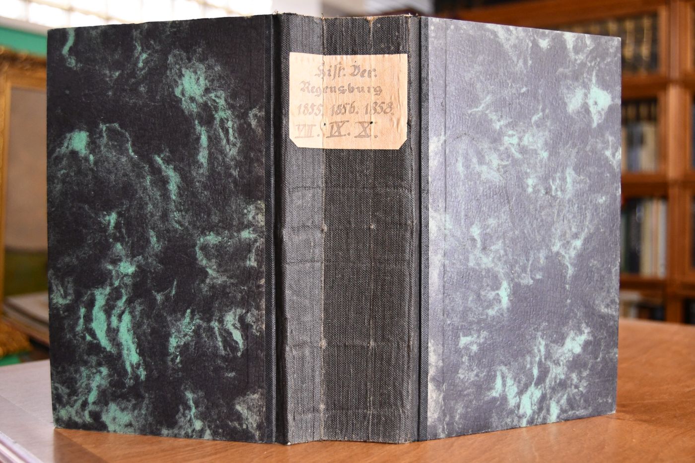Beschreibung Einband berieben und bestoßen. Schnitt fleckig. Durchgehend fleckig.Beinhaltet: Jos. Rud. Schuegraf: Nachträge zur Geschichte des Domes von Regensburg, S. 1-294. Chr. Ludw. Bösner: Lebensskizze des großherz. Mecklenburg-Schwerin`schen geh. Legationsrathes Christian Gottlieb Gumpelzhaimer in Regensburg, S. 1-23; Joh. Nep. Obermayr: Sprachlicher Beweis der Stammverwandtschaft der Germanen und der Gallier (Kelten), mit besonderer Rücksicht auf Bayern, S. 25-46; Jos. Rud. Schuegraf: Erklärung der Inschrift der alten Glocke in Bruckbach, S. 47-64; Wilh. Brenner-Schäffer: Versuch einer Geschichte des Landgerichtsbezirkes Weiden, S. 65-291; Karl Roth: Rennewart, altdeutsches Gedicht des 13. Jahrh. verfaßt von Uelrich von Türheim, Nabburger Bruchstücke, S. 293-436; Nik. Erb: Geschichte des Landsassengutes Heimhof in der Oberpfalz, S. 437-494. Andr. Niedermayer: Die Dominikanerkirche in Regensburg, S. 1-73; Nikolaus Erb: Anselm Desing, Abt des Klosters Ensdorf in der Oberpfalz, S. 75-133; Joh. Rud. Schuegraf: Drei Rechnungen über den Regensburger Dombau aus den Jahren 1487, 1488 und 1489, S. 135-204; Carl Aug. Böhaimb: Die Besitzer von 51 ehemaligen pfalzneuburgischen Hofmarken im kgl. Regierungsbezirke von Oberpfalz und Regensburg, S. 205-351.
