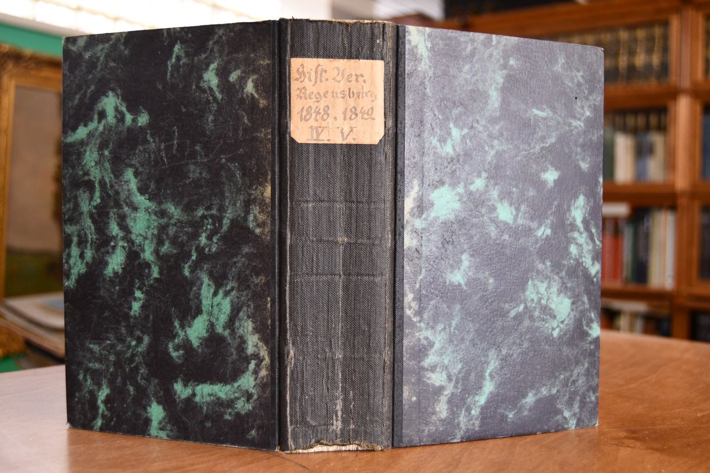 Beschreibung Einband berieben und bestoßen. Durchgehend immer wieder fleckig.Beinhaltet:J.R. Schuegraf: Geschichte des Domes von Regensburg II. Theil, S. III-311. Jos. Hefner: Die römischen inschriftlichen Denkmäler Regensburgs, S. 1-85; Jos. Rud. Schuegraf: Glossen über ein Zinsbuch der Stadt Amberg v. J. 1585, S. 86-148; Joh. Nep. Obermayr: Die Schlacht auf dem Mordfelde oder die Wiederherstellung des Königreichs Norikum d. i. Bayern, S. 149-271; Ernst Friedr. Mooyer: Auszüge aus zwei Nekrologien des Klosters St. Emmeram in Regensburg.