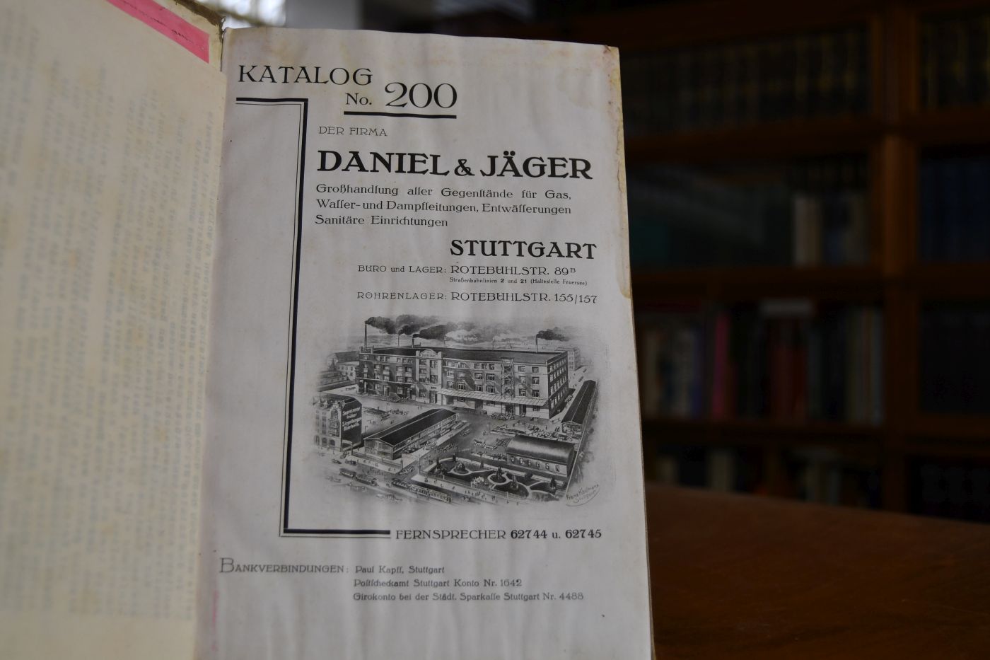 Katalog No. 200 der Firma Daniel & Jäger. Großhandlung aller Gegenstände für Gas, Wasser- und Dampfleitungen, Entwässerungen, Sanitäre Einrichtungen.