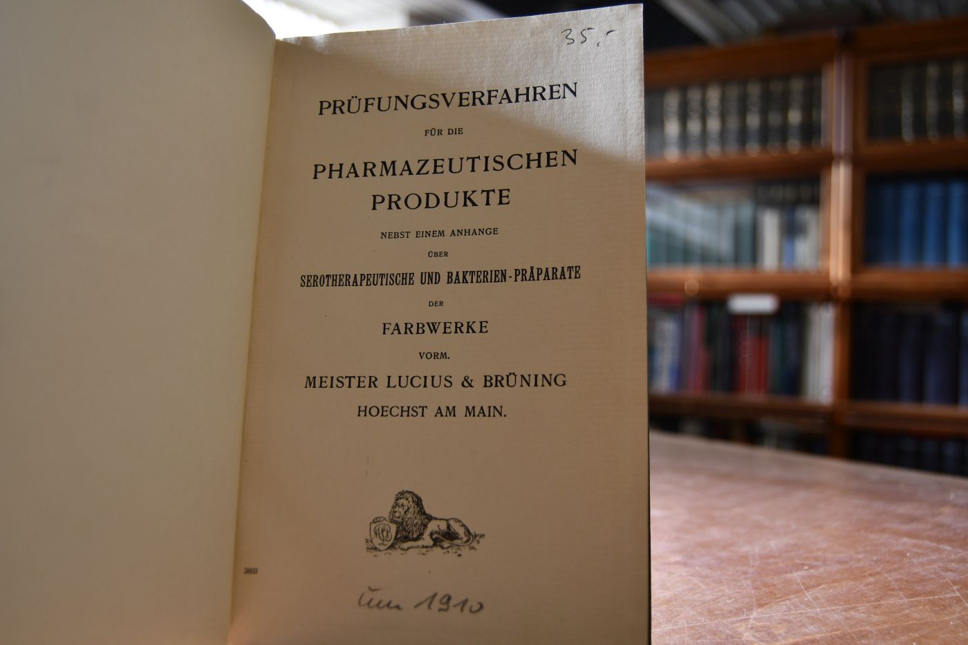 Prüfungsverfahren für die Pharmazeutischen Produkte. Nebst einem Anhange über serotherapeutische und Bakterien-Präparate der Farbwerke vorm. Meister Lucius & Brüning Hoechst a.M.
