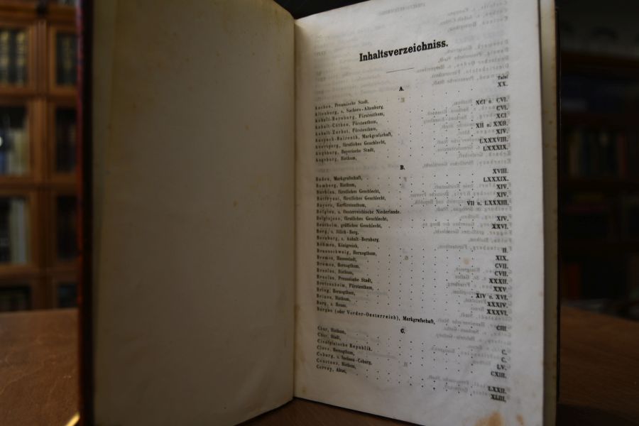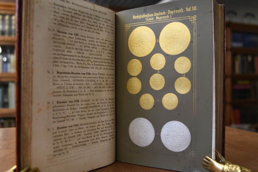 Münzsammlung enthaltend die wichtigsten seit dem Westfälischen Friedenbis zum Jahre 1800 geprägten Gold-und Silbermünzen sämmtlicher Länder und Städte. Mit geographischen, geschichtlichen, statistischen,heraldischen und numismnatischen Erläuterungen.