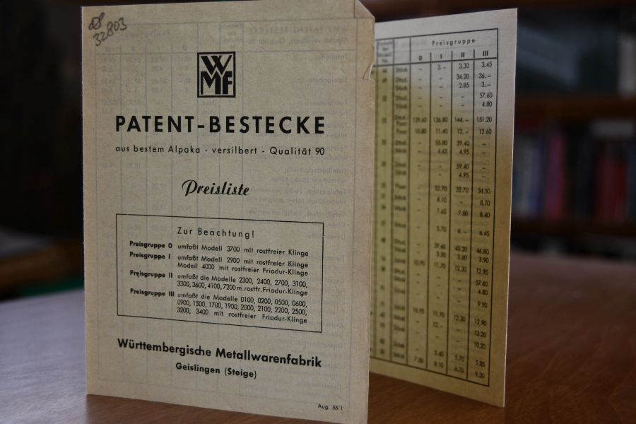 WMF Patent-Bestecke aus bestem Alpaka -versilbert- Qualität 90. Preisliste 55/1.