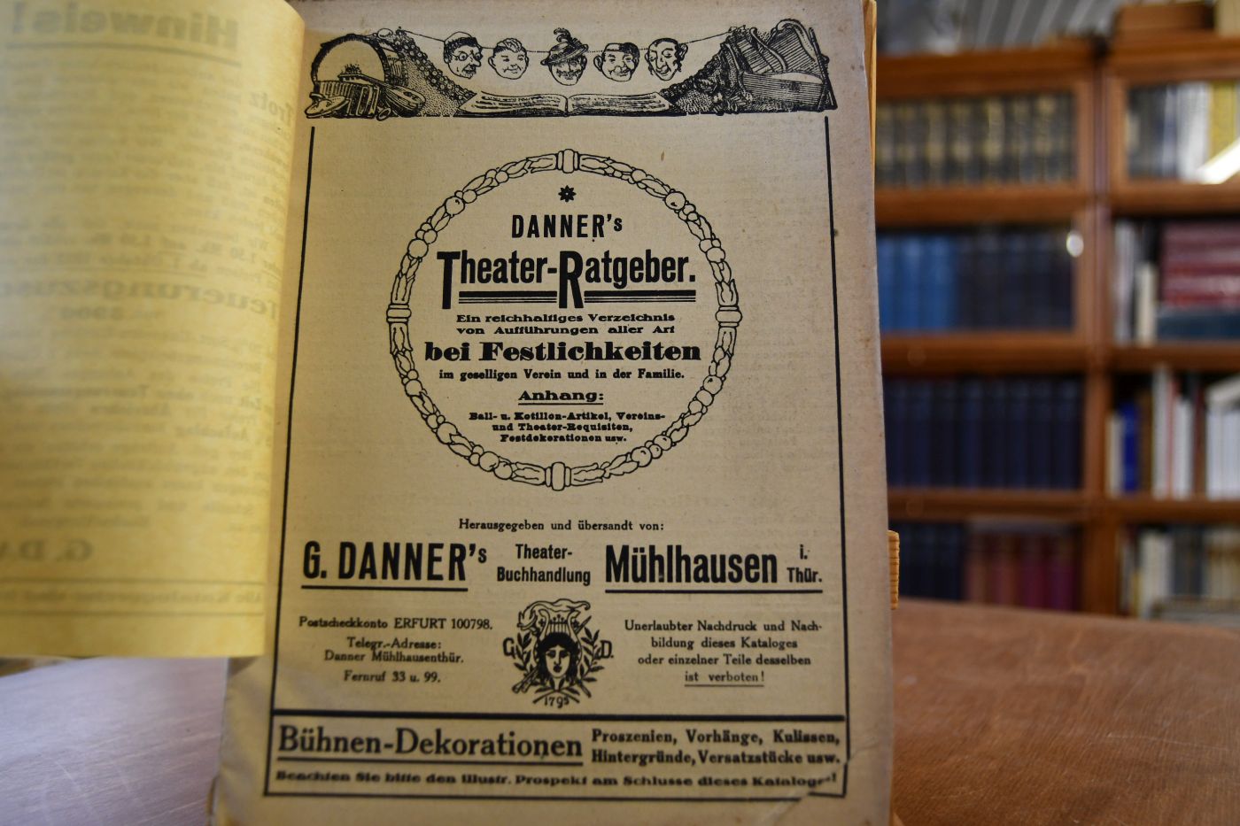 Danner`s Theater-Ratgeber. Ein reichhaltiges Verzeichnis von Aufführungen aller Art bei Festlichkeiten im geselligen Verein und in der Familie. Anhang Ball- u. Kotillon-Artikel, Vereins- und Theater-Requisiten, Festdekorationen usw.