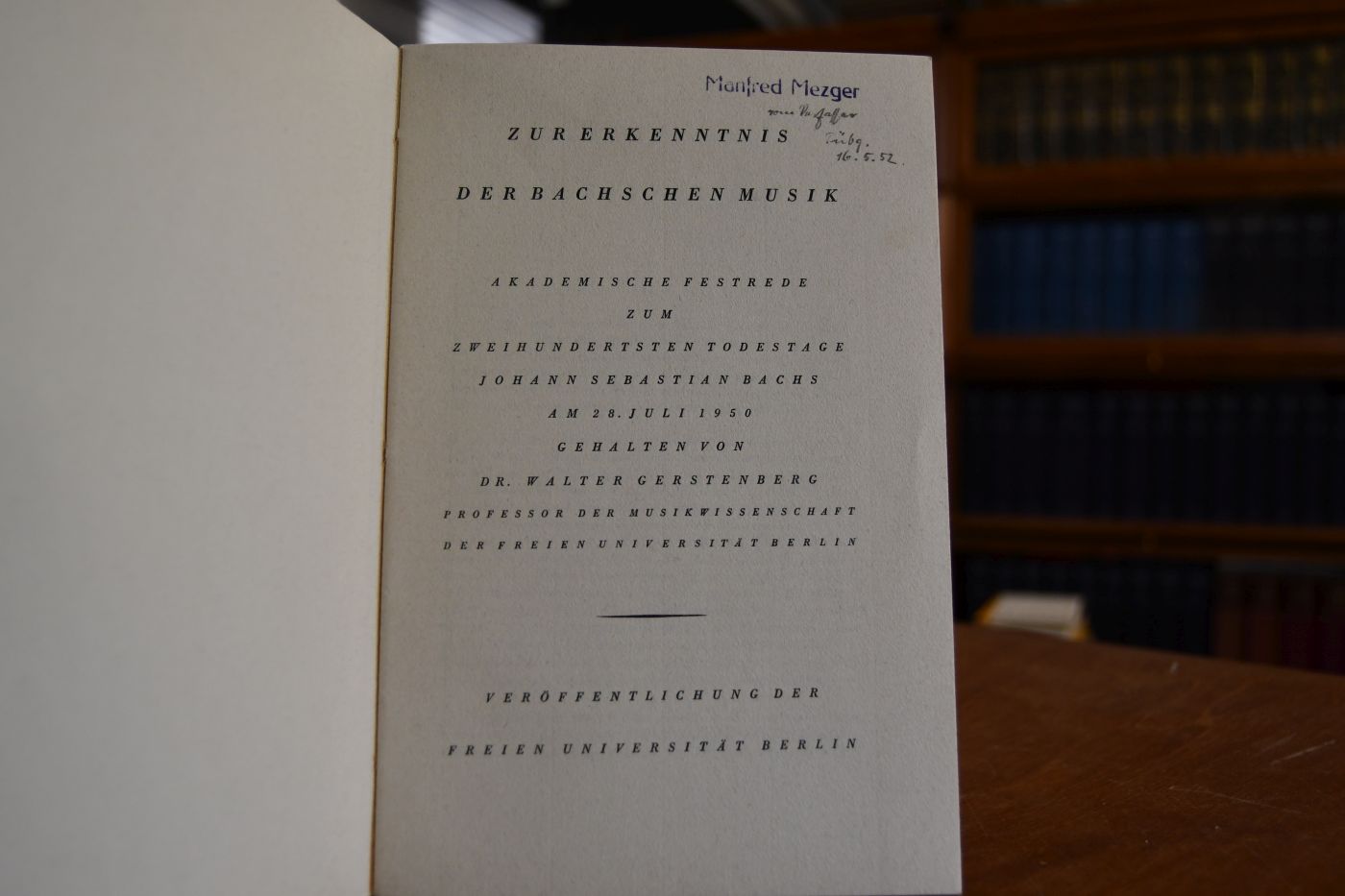 Zur Erkenntnis der Bachschen Musik. Akademische Festrede zum zeihundertsten Todestage Johann Sebastian Bachs am 28. Juli 1950 gehalten.