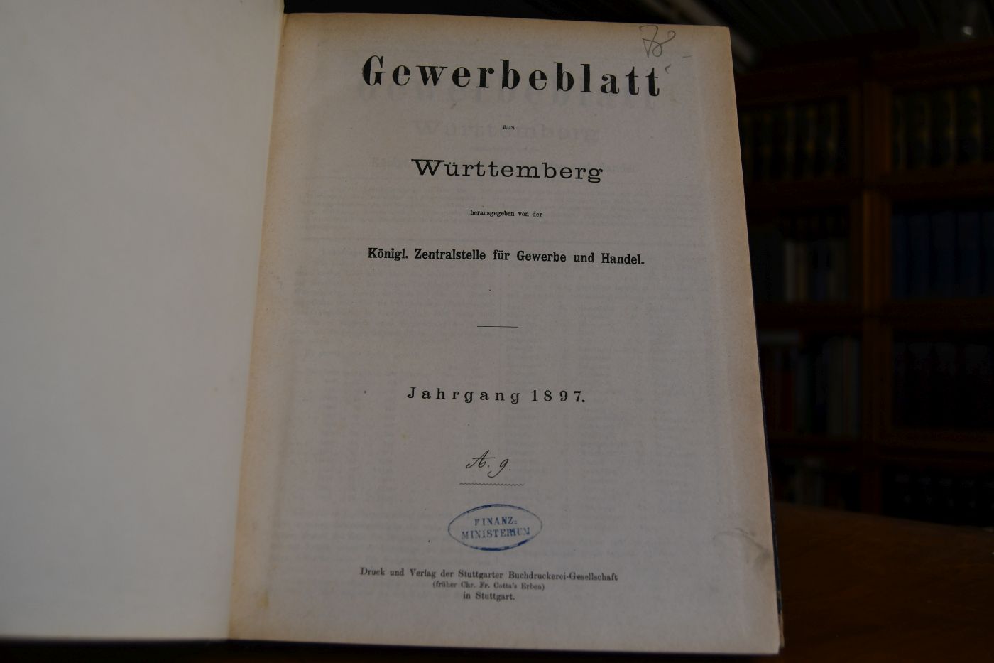 Gewerbeblatt aus Württemberg herausgegeben von der Königl. Zentralstellefür Gewerbe und Handel. Jahrgang 1897.