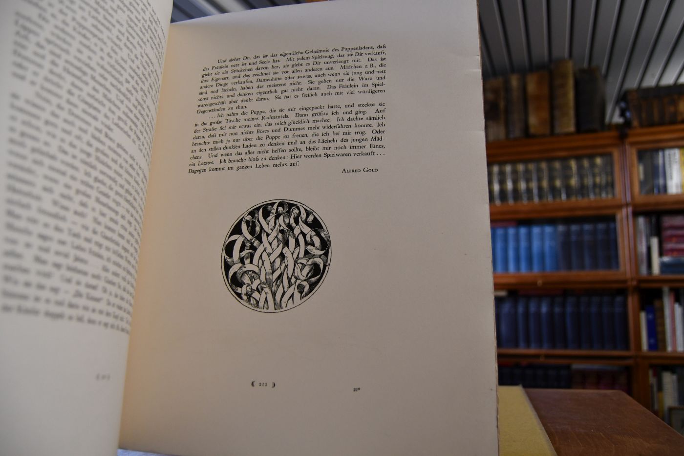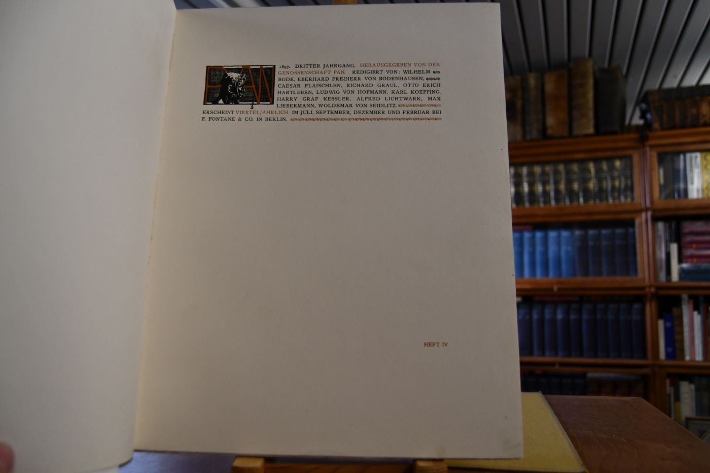 Seiten S. 205 - 267 mit 4 von 9 Tafeln (es sind vorhanden: Emil Orlik, Plakat zu Gerhart Hauptmann`s "Weber" (Farbige Netzätzung nach einer Lithographie), Theodora Onasch, Buchumschlag (Farbige Strichätzung); P. Becker, ansicht von Kiedrich (Netzätzung nach einer Lithographie aus dem Jahre 1861); Max Liebermann, Constatntin Meunier (Lichtdruck).