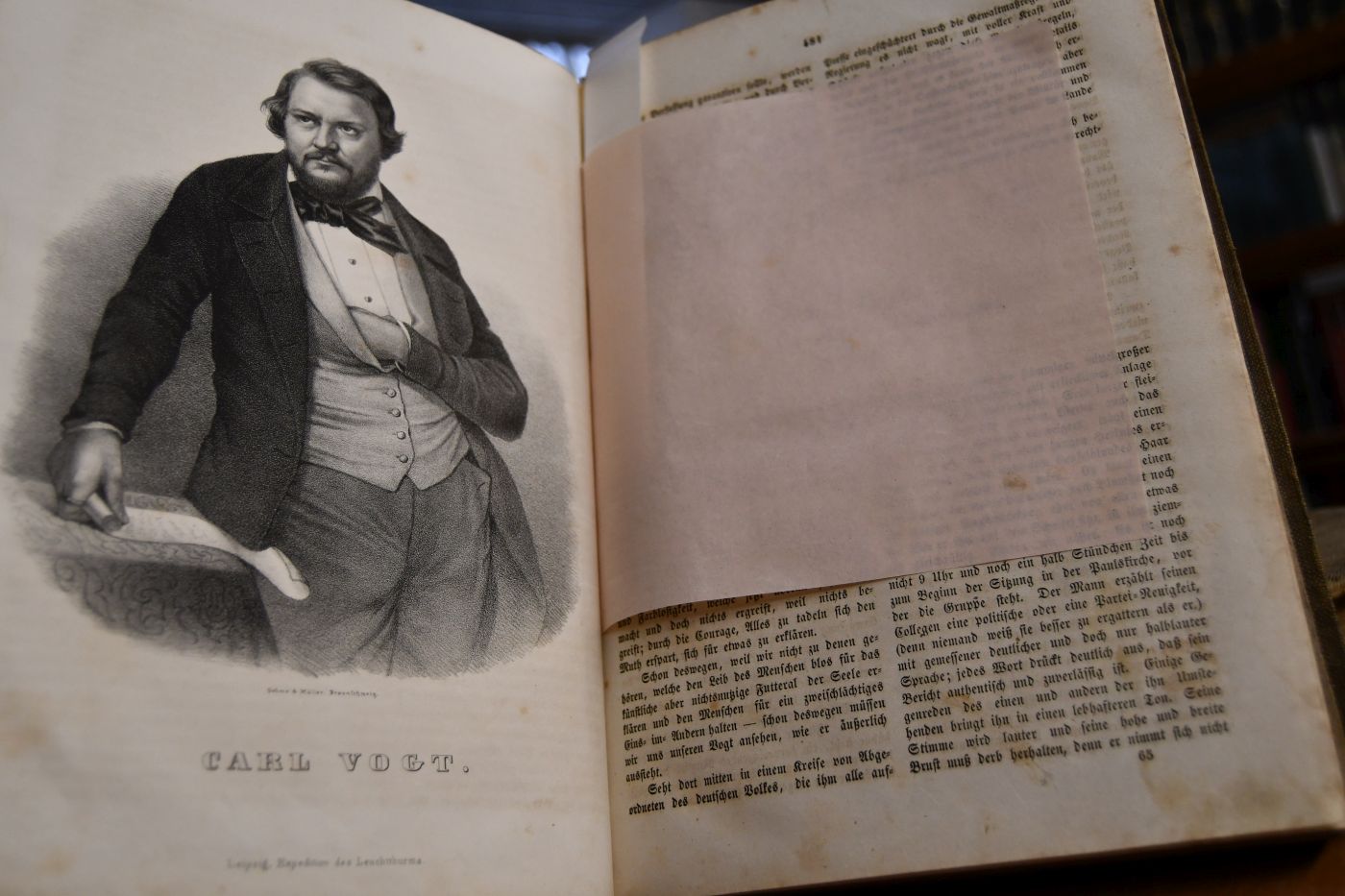 Seiten 456, 96 S. mit Ill.; S. 458-664, S.98-144 mit Ill. + insgesamt 12 ganzseitige lithographierte Porträts von freisinnigen Zeitgenossen (Gottfried Kinkel, Dr. Carl D`Ester, Georg Klapka, J.D.H. Temme, Schultze-Delitzsch, W. Messenhauser, Carl Vogt, Ledru-Rollin, Ludwig Simon, Mazzini, H.A. Erbe,J. Fickler).