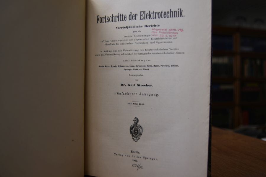Beschreibung Einband berieben und mit Verlust am Rücken. Bibliotheksband (Kaiserliches Patentamt) mit den üblichen Stempeln und Eintragungen. Innen sauber.