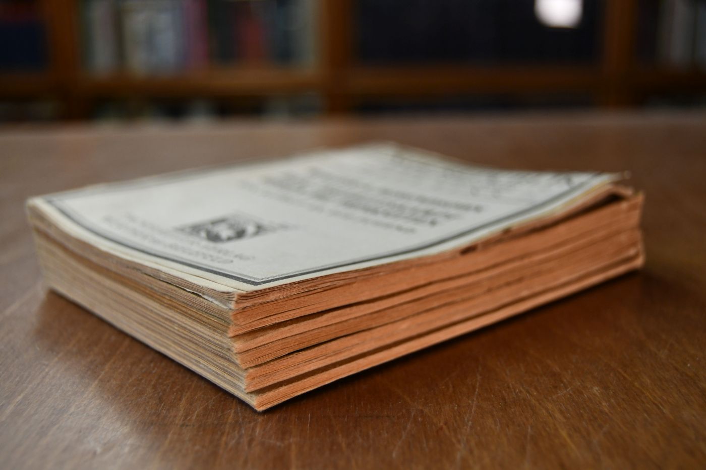 Beschreibung Einband berieben, bestoßen und angeschmutzt. Heftklammern etwas ankorrodiert. Heft 1 Einband mit Einrissen, knittrig und fast vom Block gelöst.