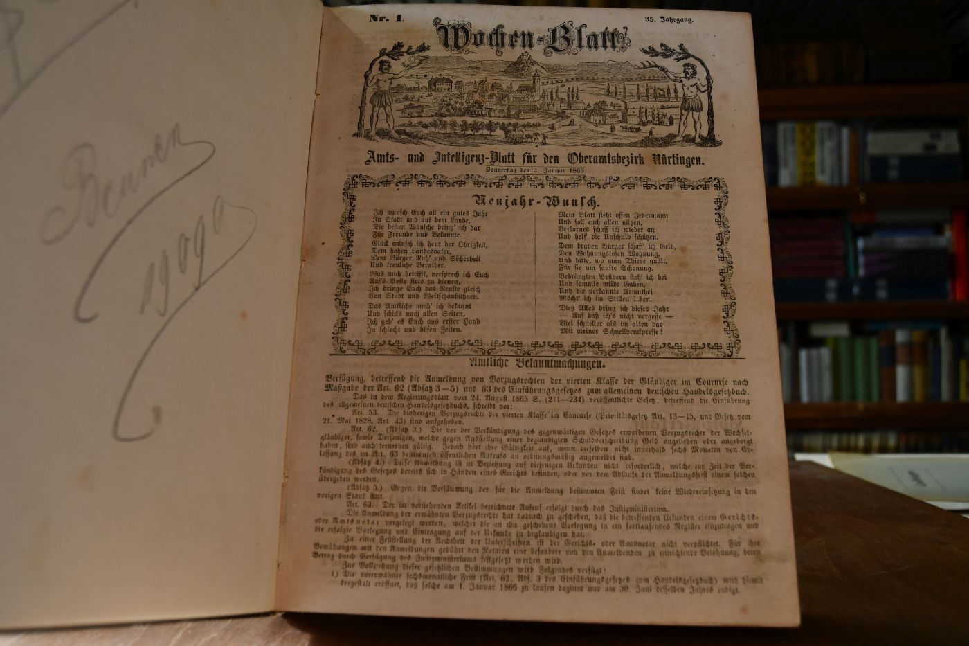 Wochen-Blatt. Amts- und Intelligenz-Blatt für den Oberamtsbezirk Nürtingen. 35. Jahrgang. Nr. 1-153.