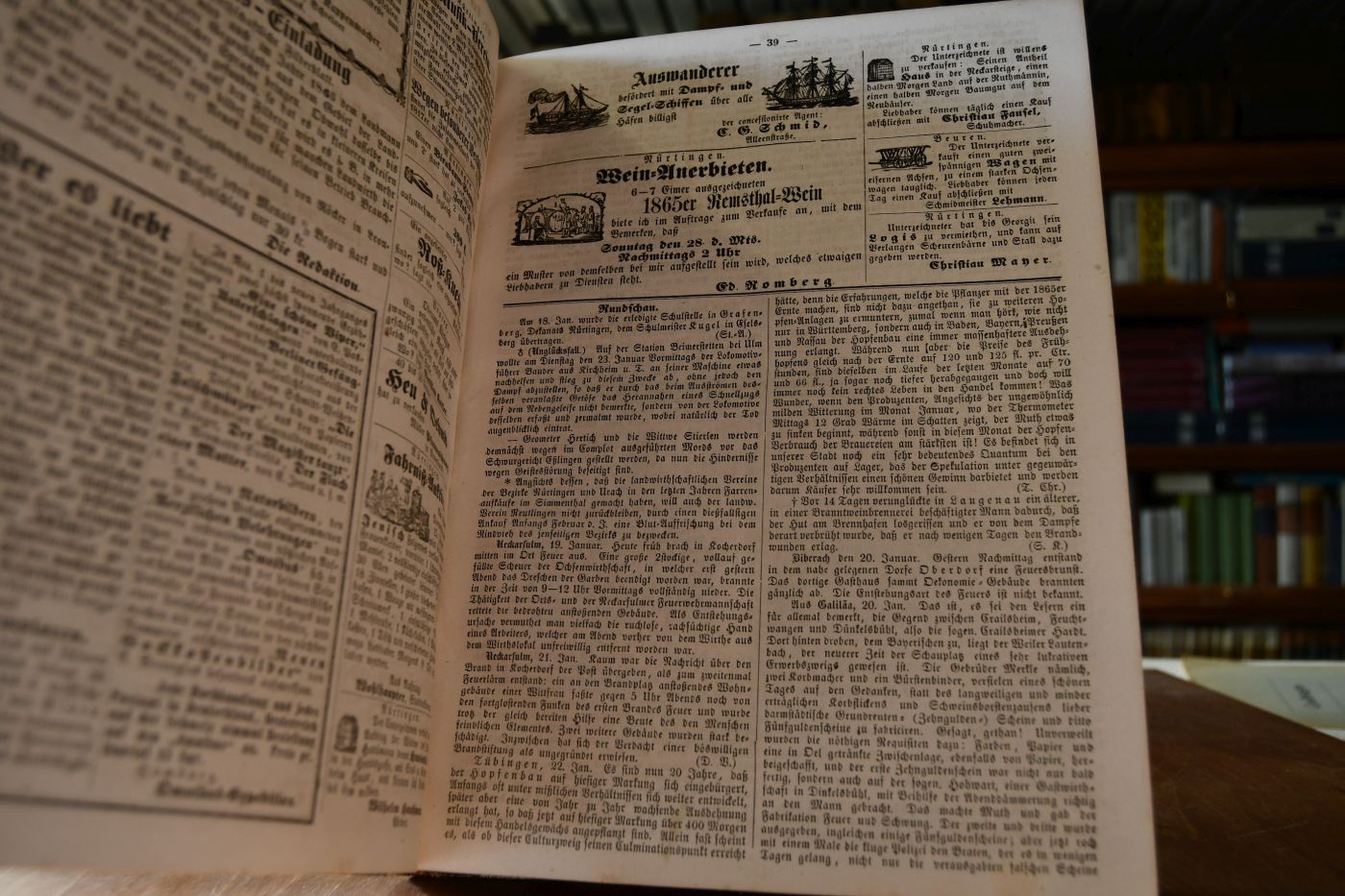 Beschreibung Einband berieben und bestoßen. Handschriftlicher Besitzereintrag (Rudolf Schraft, Beuren, 1909) auf dem fliegenden Vorsatz. Durchgehend fleckig. Fast jede Nummer mit einer Ortsansicht von Nürtingen