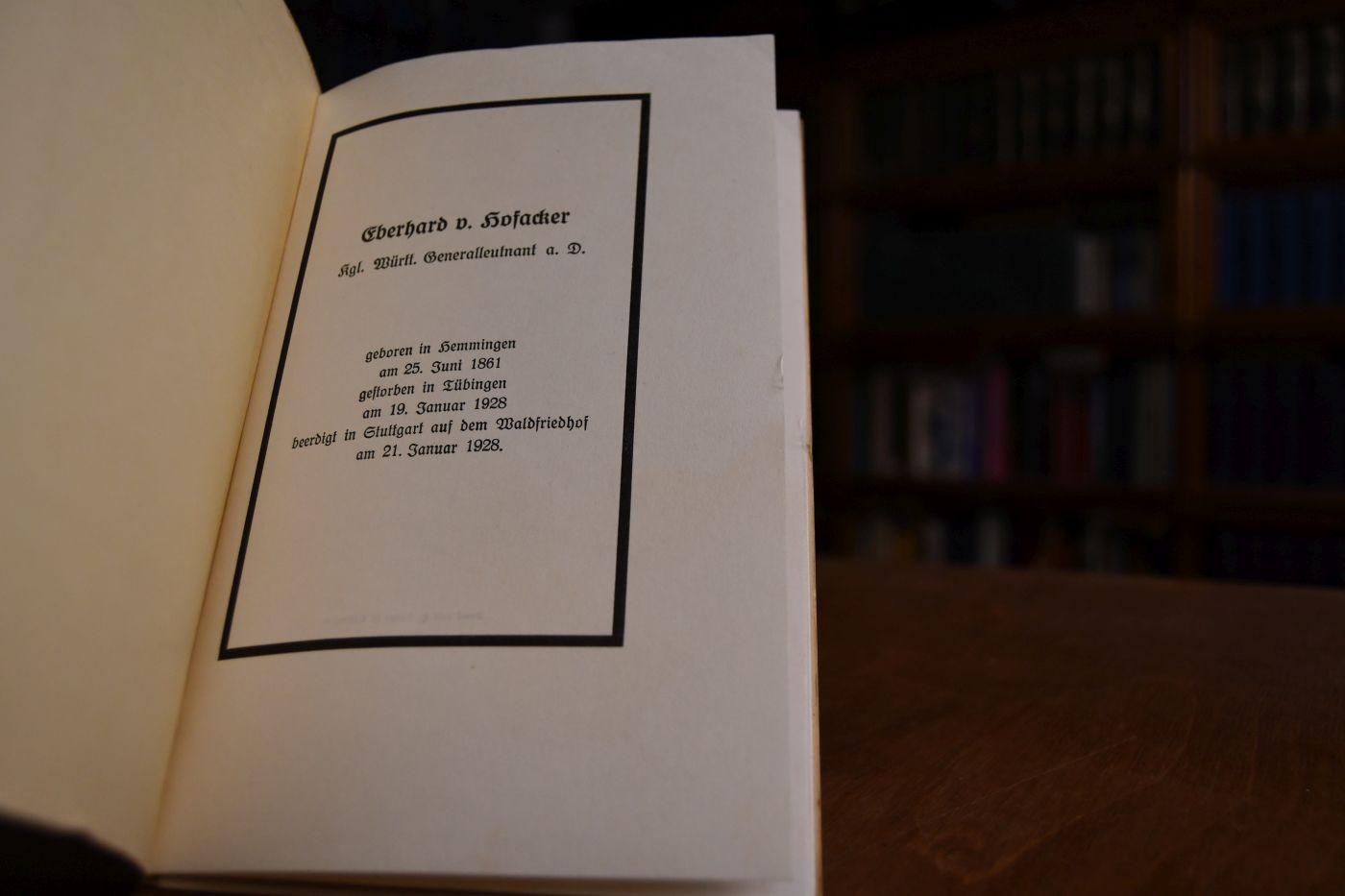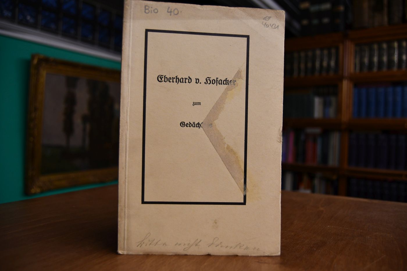 Beschreibung Einband berieben, bestoßen, angeschmutzt und mit Kuvertanhaftungen. S. 9-16 mit Silberfischchenfraß (außerhalb des Textes) am oberen Rand. beiliegend eine gelumbeckte 17-seitige Sammlung von Pressetexten zum Tode von Eberhard v. Hofacker. Auf dem Vorderdeckel der handschriftliche Vermerk: "Bitte nicht danken".
