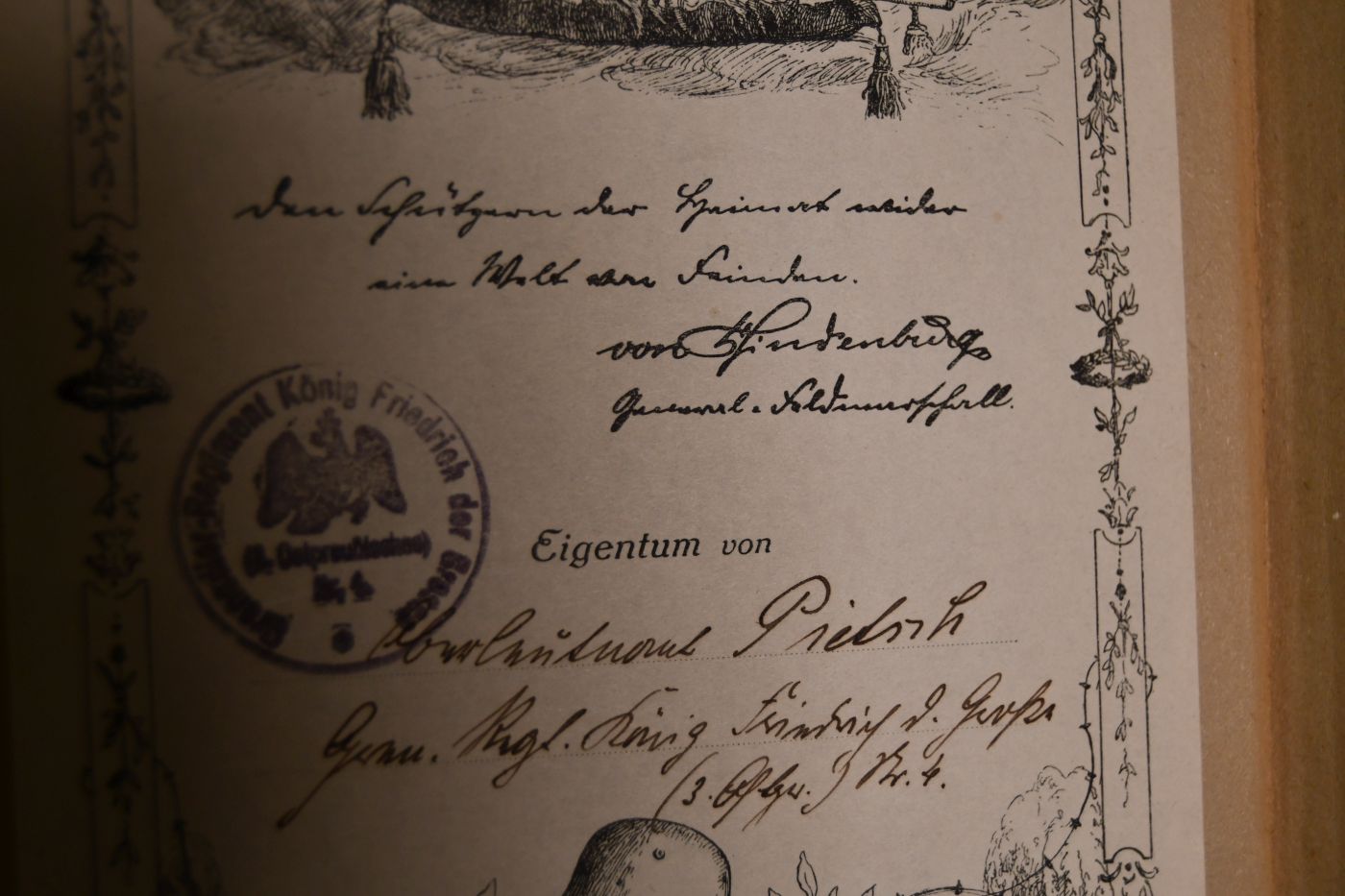 Beschreibung Einband berieben, bestoßen und fleckig. Rücken mit Einrissen. Papierbedingt gebräunt. In Bd. 1 eine eingeklebte Widmung von Generalfeldmarschall Hindenburg, die von Arthur Kampf gestaltet wurde. Handschriftlich an Oberleutnant Pietsch vom Grenadierregiment König Friedrich der Große (3. Ostpreußisches) Nr. 4. Mit einem Stempel des Regiments.