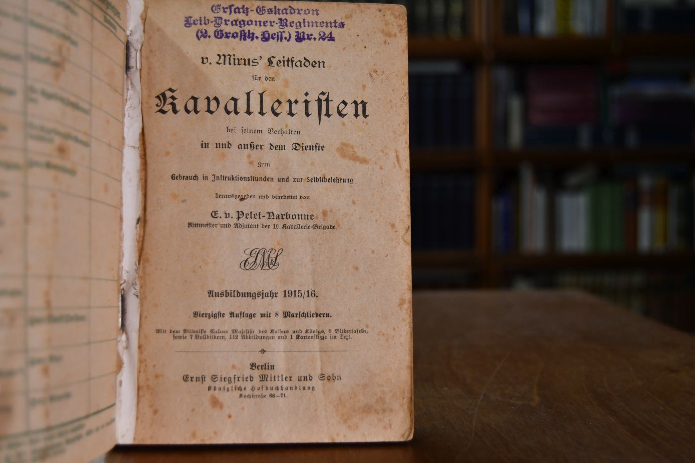 v. Mirus` Leitfaden für den Kavalleristen bei seinem Verhalten in und außer dem Dienste. Zum Gebrauch in Instruktionsstunden und zur Selbstbelehrung. Ausbildungsjahr 1915/16.