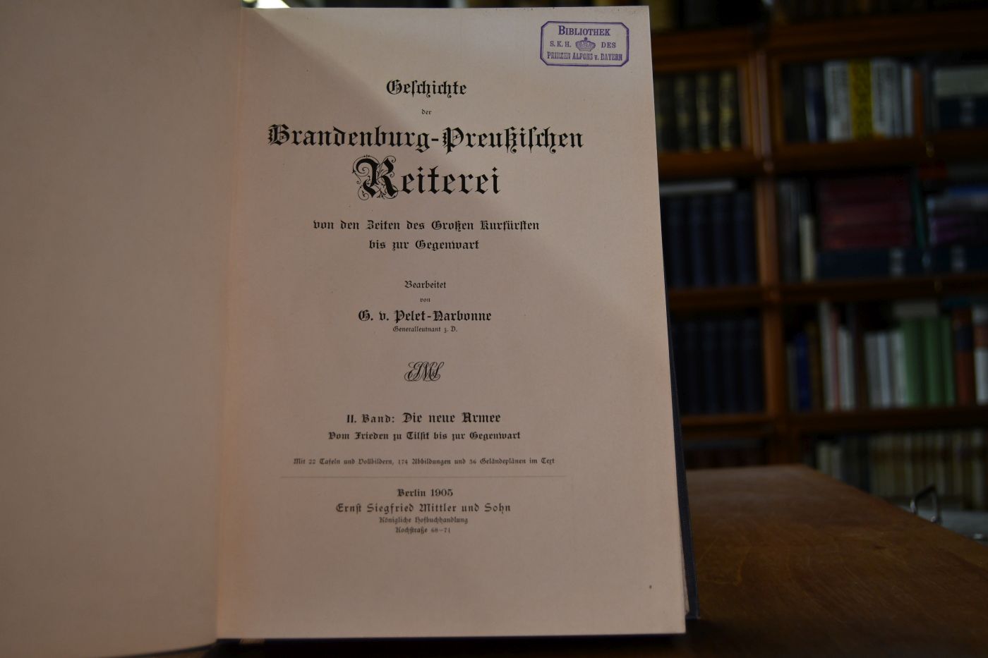 Beschreibung Einband berieben, bestoßen und etwas fleckig. Innen sauber. Besitzerstempel (Bibliothek S.K.H. des Prinzen Alfons von Bayern) auf dem Titel. Beiliegend Verlag E.S. Mittler & Sohn: Sonderverzeichnis Nr. 39, Wichtige kavalleristische Literatur, 15 S.