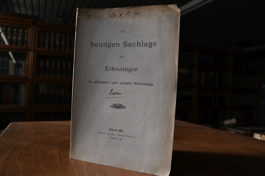 Beschreibung Einband berieben, bestoßen, angeschmutzt und mit Standorteintragungen auf dem Vorderdeckel. Etwas eselsohrig. Beiliegend ein handschriftlicher Überreichungszettel des Verfassers. Bastian war Mitbegründer der Völkerpsychologie und Forschungsreisender. 1868 übernahm er in Berlin die Leitung des Museums für Völkerkunde, las seit 1869 an der Univ. über Ethnologie und begründete mit Virchow die Zeitschrift für Ethnologie.