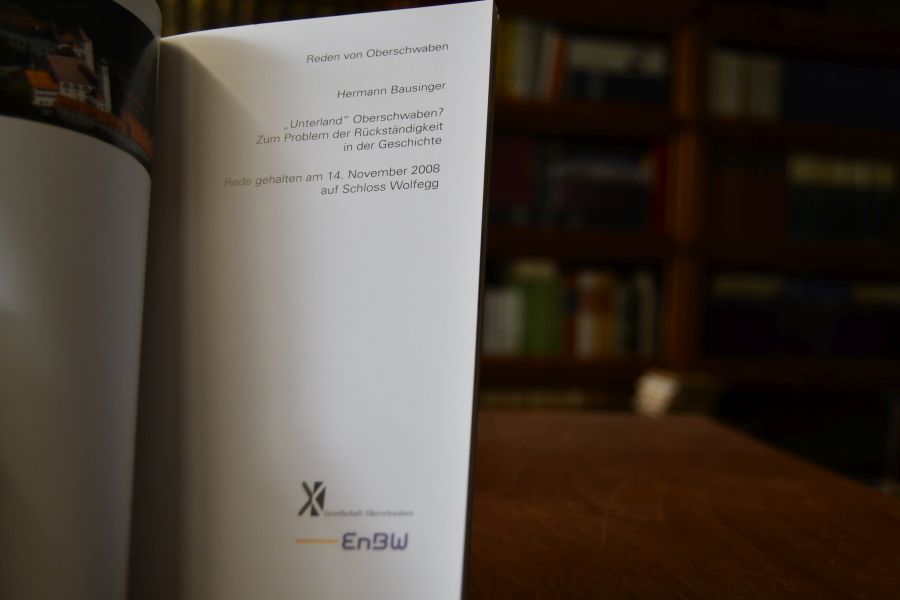 "Unterland "Oberschwaben? Zum Problem der Rückständigkeit in der Geschichte. Rede gehalten am 14. November 2008 auf Schloss Wolfegg.