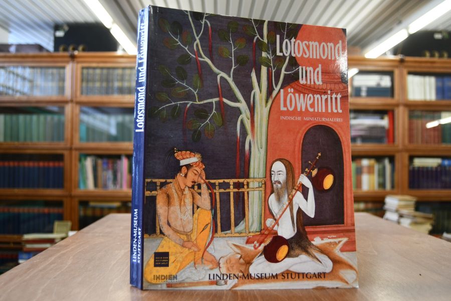 Lotosmond und Löwenritt. Indische Minitaurmalerei.