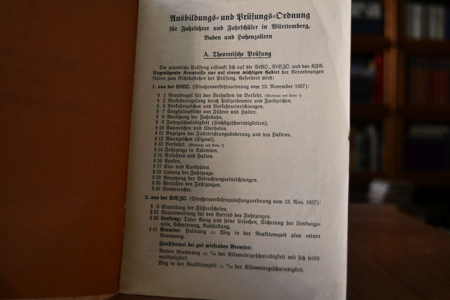 Ausbildungs- und Prüfungs-Ordnung für Fahrlehrer und Fahrschüler in Württemberg, Baden und Hohenzollern.