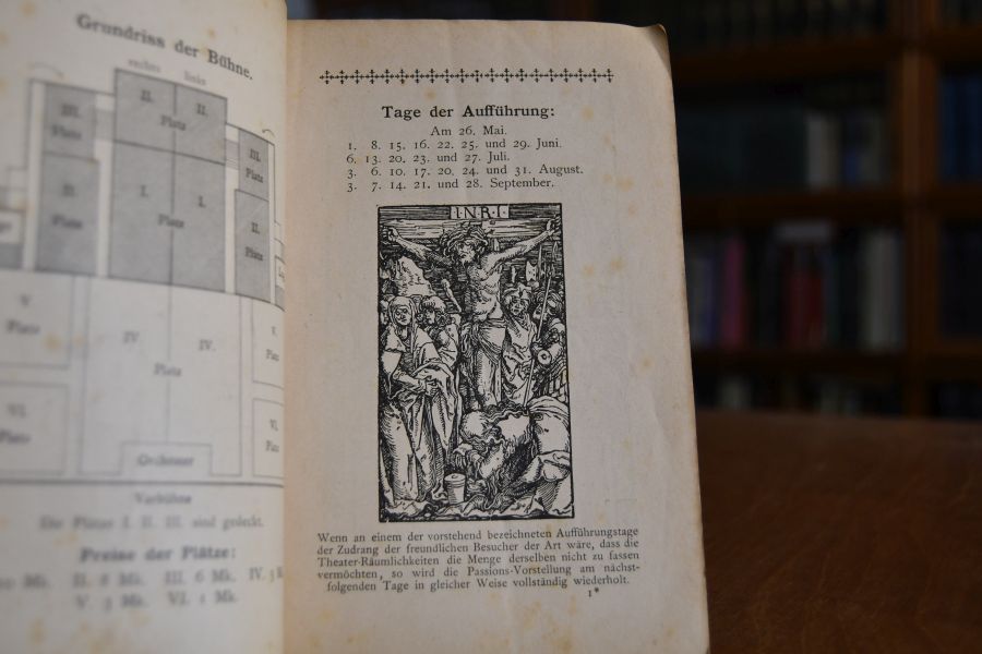 Das grosse Versöhnungsopfer auf Golgatha oder die Leidens- und Todesgeschichte Jesu. Nach den vier Evangelisten mit vorbildlichen Darstellungen aus dem alten Bunde zur Erbauung und Betrachtung mit allerhöchster und allergnädigster Bewilligung aufgeführt zu Oberammergau. Gesangs-Textbuch zum Passionsspiel in Oberammergau 1890.