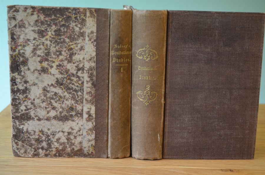 Beschreibung Einband berieben und bestoßen. Bibliotheksexemplar mit den üblichen Stempeln und Eintragungen. Besitzerstempel auf dem Titel. Innen durchgehend etwas fleckig. Handschriftlicher Besitzereintrag von Paul Merveldt, Graf, k.u.k. Rittmeister (* 24.04.1838, † 03.06.1870 in Ischl) in Bd. 1. Diese Auflage kam nicht in den Buchhandel (Graefe, Hippologische Literatur S. 124).