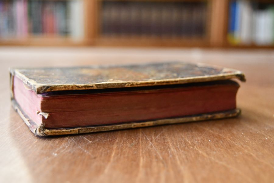 Format 13 x 9 cm, Halbleder mit umlaufendem Rotschnitt