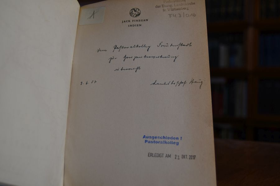 Beschreibung Bibliotheksband mit den üblichen Stempeln und Aufklebern. Einband berieben und bestoßen. Handschriftliche Widmung von Landesbischof Martin Haug an das Pastoralkolleg Freudenstadt vom 3.6.1957 auf dem Schmutztitel.