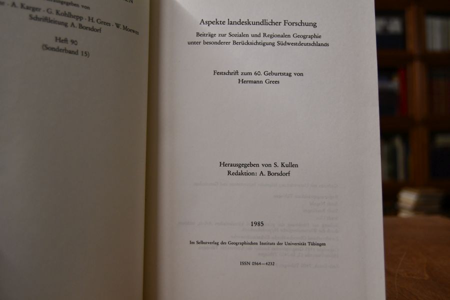 Aspekte landeskundlicher Forschung. Beiträge zur Sozialen und Regionalen Geographie unter besonderer Berücksichtigung Südwestdeutschlands. Festschrift zum 60. Geburtstag von Hermann Grees.