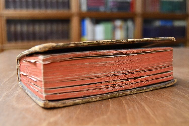 Format 17 x 10 cm, Leder mit Rückenschild, Rückenvergoldung und umlaufenden Rotschnitt