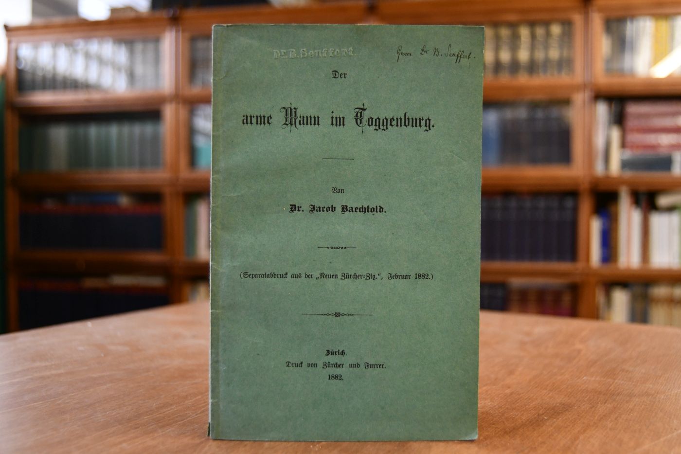 Beschreibung Einband berieben und mit Einrissen. Handschriftlicher Namenseintrag (wohl von Jacob Baechtold) auf dem Titel und ein Besitzerprägestempel (Dr. B. Seuffert) auf dem Vorderdeckel.