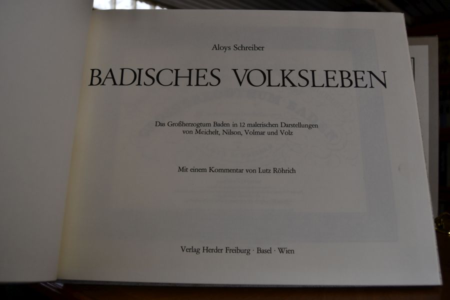 Auflage Unveränderter Nachdruck des Werkes "Trachten, Volksfeste und charakteristische Beschäftigungen im Grosherzogthum Baden in XII malerischen Darstellungen", erschienen 1823 in der Herder`schen Kunst- u. Buchhandlung Freiburg mit einem ergänzenden volkskundlichen Kommentar von Lutz Röhrich