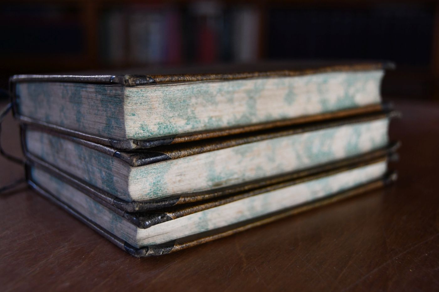 Format 16 x 12 cm, Halbleder der Zeit mit umlaufendem, marmoriertem Schnitt