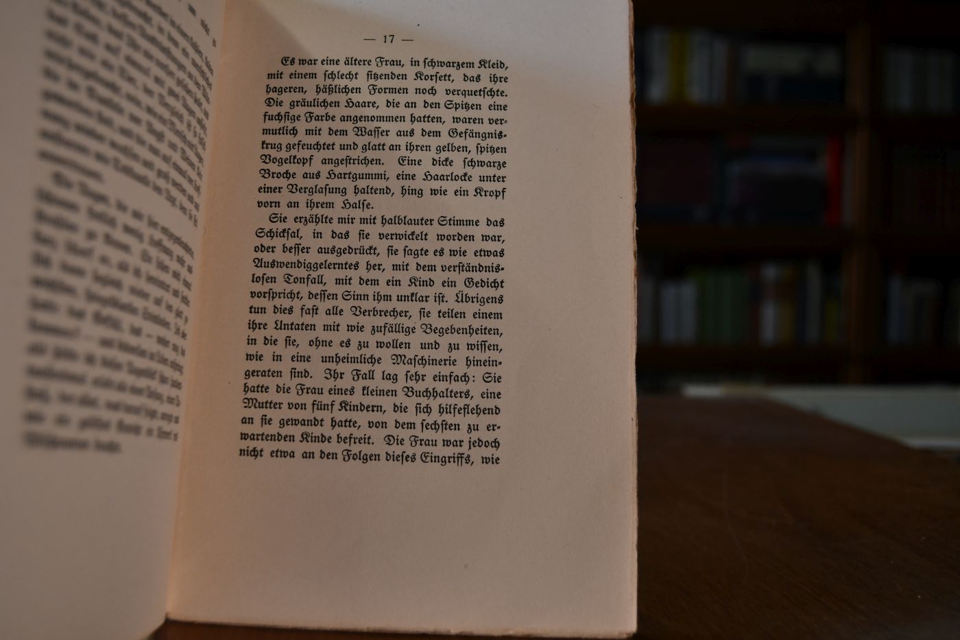Beschreibung Einband berieben und bestoßen. Vorderdeckel vom Rücken gelöst. Rücken mit Einrissen. Unbeschnittene Seitenränder fleckig.