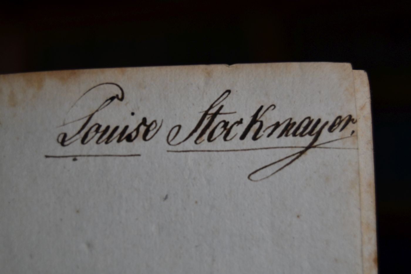 Beschreibung Einband berieben, bestoßen. Durchgehend etwas fleckig. Handschriftlicher Besitzereintrag (Louise Stockmayer) auf dem fliegenden Vorsatz und Besitzerstempel (Dr. G. Pfeilsticker-Stockmayer) auf dem Titel. Insgesamt recht guter Zustand. Enthält: Faust, Puppenspiel, Fastnachtspiel, Bahrt, Parabeln, Legende, Hans Sachs, Mieding, Künstlers Erdewallen, Künstlers Apotheose, Epilog zu Schillers Glocke, Die Geheimnisse, Lili`s Park. Hier vorliegend der Erstdruck des Faust I, des wohl bedeutentsten und meistzitierten Werks der deutschen Literatur. WG II, 66. Bei Louise Stockmayer handelt es sich wohl um Friedrike Louise Stockmayer geb. Frommann, die sich 1804 standhaft für die Landschaft und ihren Ehemann den Landschaftssekretär Amandus Friedrich Stockmayer, gegen Kurfürst Friedrich stellte. Dr. Gertrud Pfeilsticker-Stockmayer war eine der ersten Studentinnen der Universität Tübingen, an der sie sich 1904 für Philologie und Geschichte eingeschrieben hat.