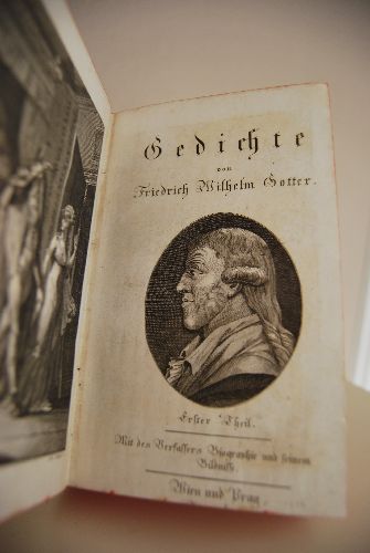 Beschreibung Einband berieben und bestoßen. Spiegel leimschattig. Titelblatt des ersten Teils so beschnitten, dass der Verlag und das Druckjahr fehlen. Innen sauber und gut. "Friedrich Wilhelm Gotter (* 3. September 1746 in Gotha; † 18. März 1797 ebenda) war ein deutscher Schriftsteller und Lyriker. Friedrich Wilhelm Gotter wuchs in einer angesehenen Gothaer Beamtenfamilie auf. Sein Vater war der Legationsrat Heinrich Ernst Gotter (1703–1772), sein Großvater der bekannte Kirchenlieddichter und Jurist Ludwig Andreas Gotter. Über seinen Urgroßvater, den Oberhofprediger und Generalsuperintendenten Johann Christian Gotter (1607–1677), ist er auch mit dem Diplomaten Gustav Adolf von Gotter verwandt. Friedrich Wilhelm Gotter heiratete 1780 die Gothaerin Luise Stiege (1760–1826). Der Ehe entsprossen drei Töchter, deren bekannteste Angelica Pauline Amalie ist, welche die zweite Ehefrau von Friedrich Wilhelm Schelling wurde. Leben und Wirken Gotter erhielt frühzeitig Privatunterricht. Bereits in früher Jugend folgten die ersten dichterischen Versuche. Im Jahr 1763 begann er ein Studium der Rechtswissenschaften in Göttingen. In dieser Zeit begann er sich für die Schauspielkunst zu interessieren und gründete selbst eine Schauspielgruppe. Für diese schrieb und dichtete er auch. Gemeinsam mit Heinrich Christian Boie begründete Gotter den Göttinger Musenalmanach, der erstmals 1770 bei Johann Christian Dieterich erschien. Nach Beendigung seines Studiums ging Gotter nach Gotha zurück, wo er zunächst die Stellung eines Archivars am Hofe Herzog Ernsts II. von Sachsen-Gotha-Altenburg bekleidete. Später wurde er Legationssekretär am Reichskammergericht in Wetzlar und daraufhin Geheimsekretär am Gothaer Hof. Parallel dazu blieb Friedrich Wilhelm Gotter weiterhin schriftstellerisch tätig und unterhielt enge Kontakte zu Theatergruppen. Weiterhin pflegte er enge Beziehungen zu Theaterdirektoren und Schauspielern wie z.B. Friedrich Ludwig Schröder, August Wilhelm Iffland, Conrad Ekhof und Karl Theodor von Dalberg. Die literarischen Werke Friedrich Wilhelm Gotters sind sehr umfassend und vielfältig. Er schrieb u.a. mehr als vierzig Theaterstücke. Diese Werke machten ihn zu Lebzeiten zu einem der meistgespielten Schriftstellern an deutschen Bühnen. Er wirkte weiterhin auch als Schauspieler und Regisseur bei der Aufführung seiner Werke mit. Darüber hinaus schrieb er zahlreiche Vorlagen für Singspiele (Libretti) sowie Dramen und Gedichte. Am bekanntesten ist sicherlich sein Gedicht “Schlafe, mein Prinzchen, schlaf ein!” aus dem Schauspiel “Esther”, das von Johann Friedrich Anton Fleischmann und in Anlehnung an dessen Komposition auch von Bernhard Flies vertont wurde. Fälschlicherweise wurde diese Komposition lange Mozart zugeschrieben (KV350). Das ironische Gedicht "Das unbefangene Mädchen" (Ich bin ein Mädchen, fein und jung...) ist typisch für Gotters Stil und wurde Mitte der 1990er Jahre in einem der ersten Fernsehwerbespots (in gesprochener Version) für einen Mobilfunkanbieter eingesetzt. Es wurde von Corona Schröter (1751–1802), später auch von Franz Biebl (1906–2001) vertont." (Wikipedia)