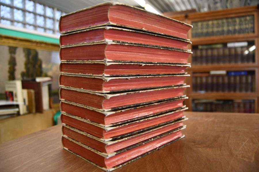 Format 20 x 14 cm, privates Halbleinen mit 2 Rückenschilden und umlaufendem Rotschnitt.