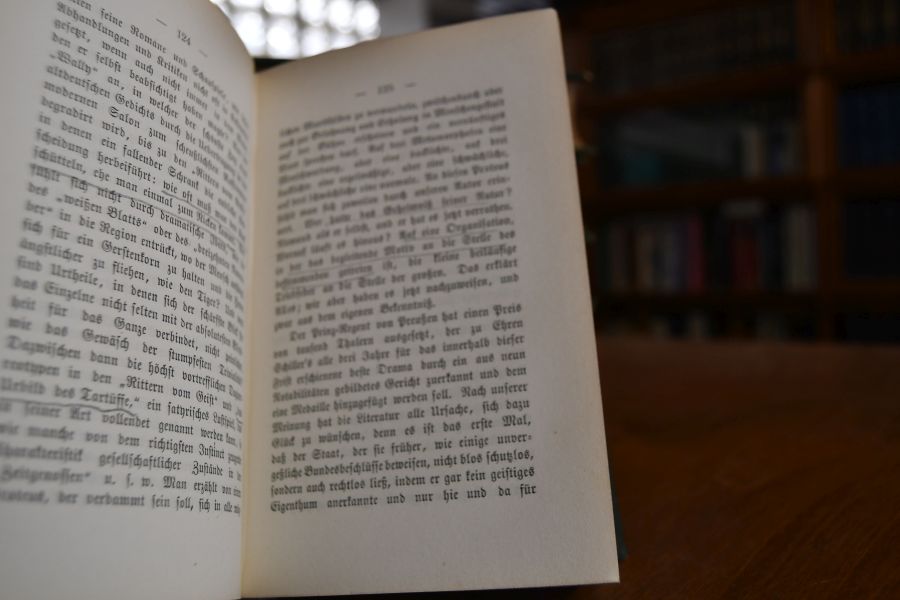 Beschreibung Einband berieben und bestoßen. Vorderdeckel von Band 1 fast vollständig von Rücken gelöst. Fälze geöffnet. Exlibris auf Innendeckeln (Ch. Fr. Adolf Schaefer). Fliegendes Vorsatz mit Eckabschnitt und herausgeschnittenem handschriftlichen Besitzereintrag. Innen meist sauber, gelegentlich etwas stockfleckig und in den Bänden 11 und 12 Bleistiftanstreichungen und -marginalien. WG II, 23..