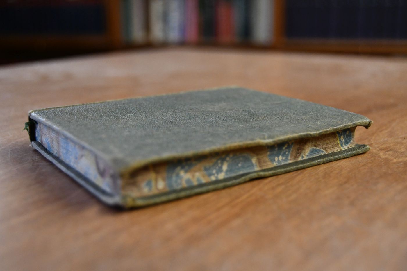 Format 13 x 10 cm, Leinen der Zeit mit umlaufendem marmorierten Schnitt.