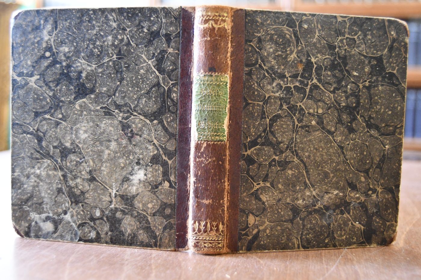 Format 13 x 11 cm, Halbleder der Zeit mit etwas Rückenvergoldung und umlaufenden Farbschnitt