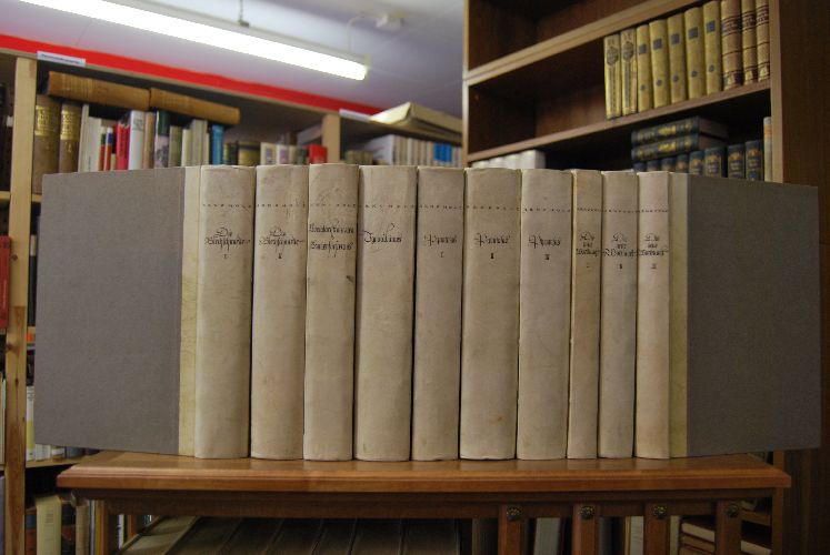 Auflage Nr. 21 von 250 Exemplaren für Hugo Zwillenberg. Jeder Band mit einer Porträtradierung von Arno Holz des Bildhauers Kurt Harald Jsenstein die von diesem und von Arno Holz signiert sind.