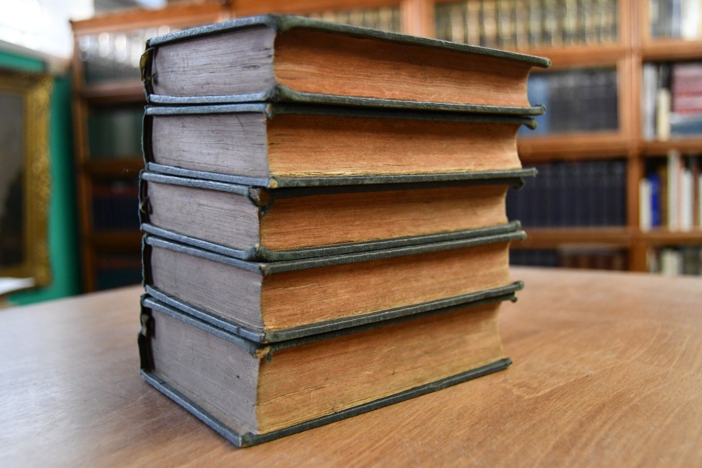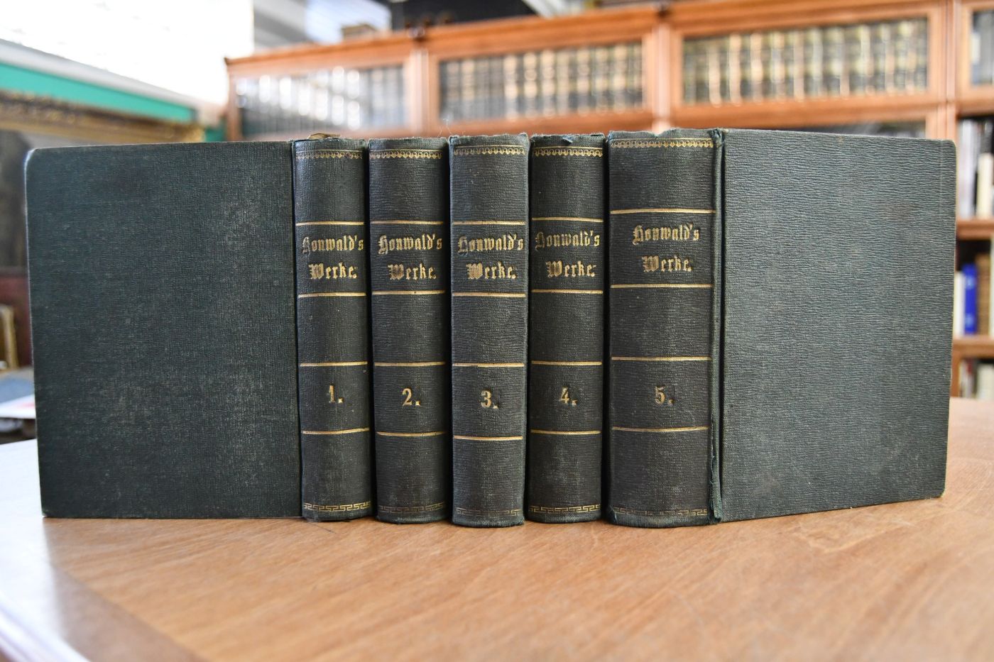 Beschreibung Einband berieben, bestoßen und angeschmutzt. Schnitt angeschmutzt uhnd abgegriffen. Vorderer Falz in Band 5 geöffnet. Durchgehend fleckig. Bibliotheksstempel (Friedrich Gundelwein) auf Innendeckel bzw. Titel (Bd. 5).
