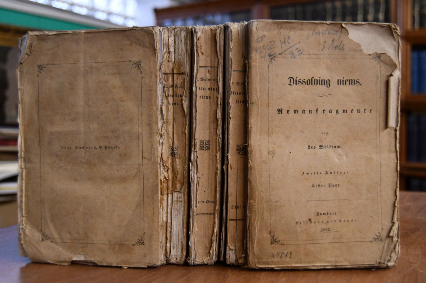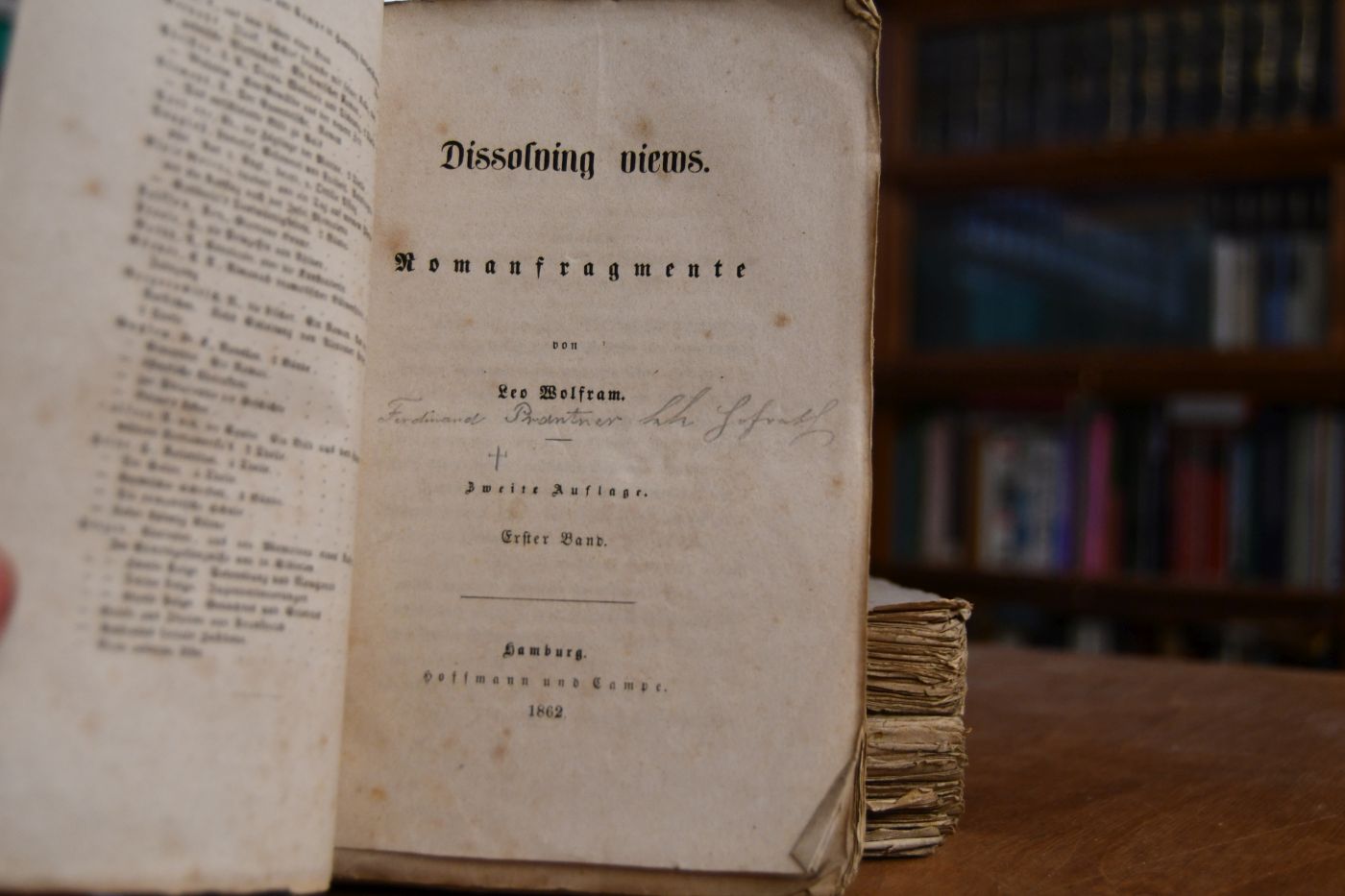 Beschreibung Einband berieben, bestoßen, angeschmutzt, mit Einrissen und etwas Verlust. Unbeschnittene Seitenränder angeschmutzt und mit Einrissen. Durchgehend gebräunt und immer wieder fleckig. "Dissolving views gilt heute als einer der ersten politischen Romane Österreichs. In diesem karikierte er unter Pseudonym hohe und höchste Persönlichkeiten im damaligen Wien. Entsprechend wurde das Werk von der Zensur verboten. Zwar wurde sein Pseudonym enthüllt, er behielt aber aufgrund seiner Verbindungen seine Stellung." (Wikipedia)