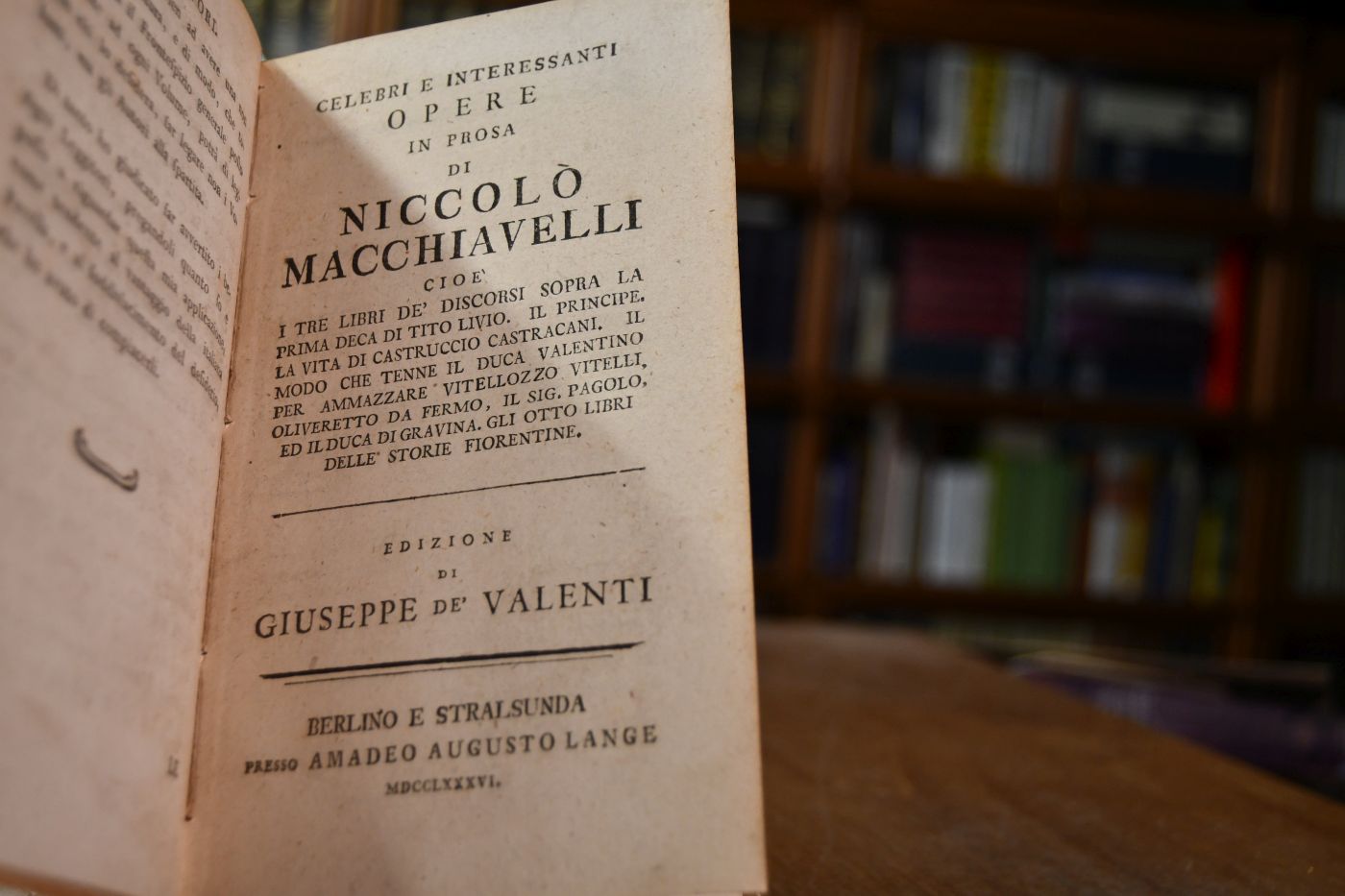 La sublime scuola Italiana ovvero le piu eccelenti opera di Petrarca, Ariosto, Dante, T. Tasso, Pulci, Tassoni, Sannazzaro, Chiabrera, Burchiello.... / ed. di Giuseppe de Valenti. - Prosatori Vol.I Celebri e interessanti Opere in Prosa di Niccolo Macchiavelli cioe i tre libri de Discorsi sopra la prima deca di Tito Livio. Il Principe. La Vita di Castruccio castracani. Il modo che tenne il duca Valentino per ammazzare vitellozzo vitelli, oliveretto da fermo, il Sig. Pagolo, ed il Duca di Gravina. Gli otto libri delle storie fiorentine.