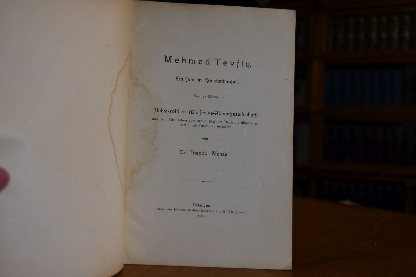 Mehmed Tevfiq, Ein Jahr in Konstantinopel. Zweiter Monat Helva-sohbeti (Die Helva-Abendgesellschaft) aus dem Türkischen zum ersten Mal ins Deutsche übertragen und durch Fussnoten erläutert.