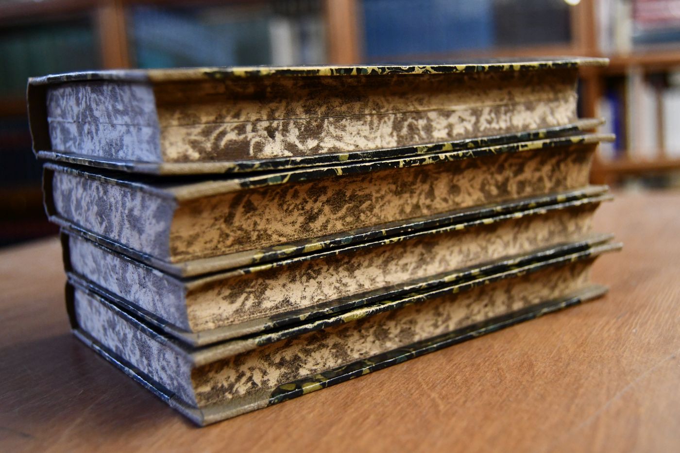 Format 17 x 12 cm, Halbleinen mit Rückenschild und umlaufenden marmorierten Schnitt