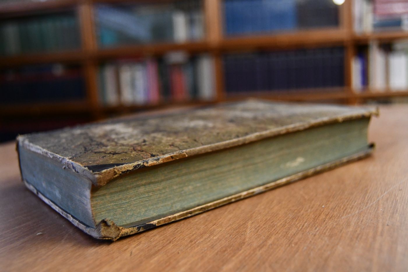Format 23 x 14 cm, Halbleder der Zeit mit umlaufendem Farbschnitt
